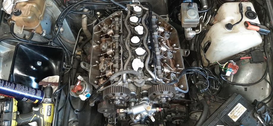 Chaine distribution, fuite d'huile, jeux aux soupapes-pastillage, problème sur injection bosch motronic, support moteur, contrôle et réfection injecteurs, antenne électrique et chauffage HS. Analyse gaz et allumage. Beaucoup de boulot pour la belle mais elle est de nouveau opérationnelle !