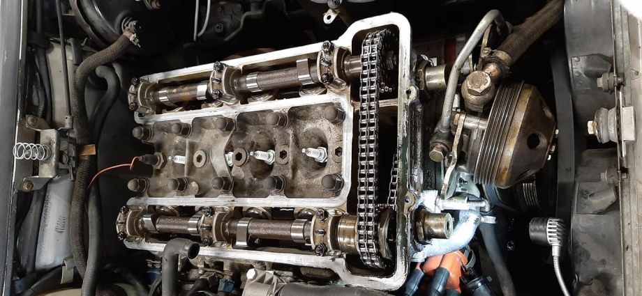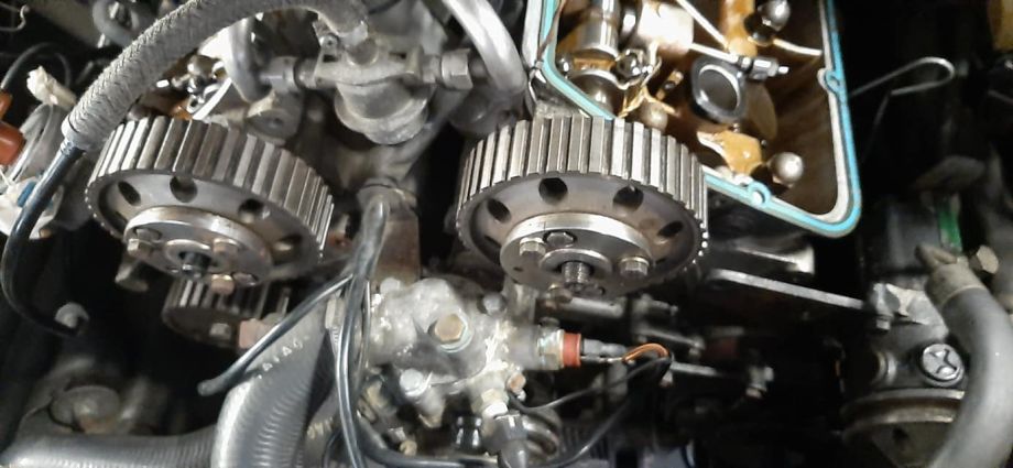 Revision moteur, remplacement courroie de distribution avec contrôle systématique des arbres à cames, jeux et poussoirs.